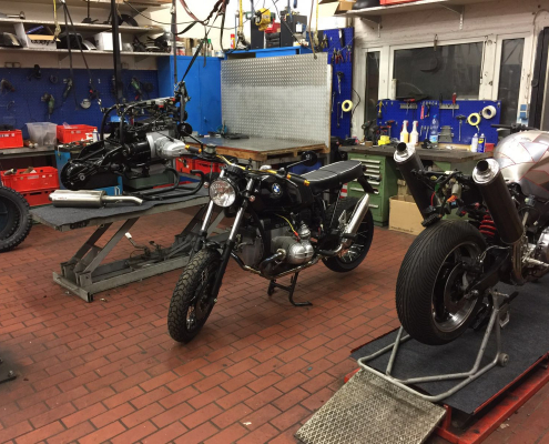 Wir bauen dein Motorrad nach deinen Vorstellungen um. Wir haben uns zwar auf Maschinen von BMW spezialisiert, mit großem Teilelager insbesondere für alte Boxer-Maschinen. Aber: Wir haben auch große Freude und Erfahrung beim Umbau von Bikes anderer Hersteller: Ob Italiener, Japaner oder Engländer – die Chancen stehen nicht schlecht, dass wir auch deine Maschine schon mal komplett in ihre Einzelteile zerlegt und schöner, besser und individueller wieder zusammengesetzt haben.